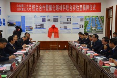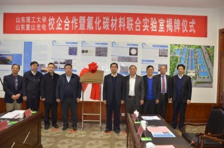 12月9日,山東理工大學-山東重山集團光電材料股份有限公司氟化碳材料聯合實驗室在山東重山集團舉行揭牌儀式。市委常委、副市長楊洪濤、山東理工大學黨委書記呂傳毅、淄川區(qū)委書記李新勝等市、區(qū)領導參加了揭牌儀式。