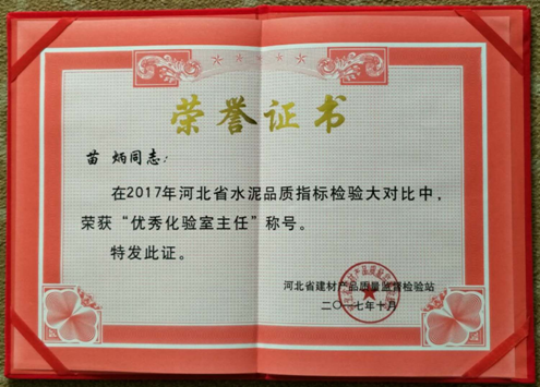 本次大會(huì)重點(diǎn)對(duì)“河北省水泥品質(zhì)指標(biāo)檢驗(yàn)大對(duì)比”活動(dòng)的獲獎(jiǎng)企業(yè)進(jìn)行了表彰獎(jiǎng)勵(lì),黃驊三陽公司以優(yōu)異的成績榮獲水泥檢驗(yàn)“全優(yōu)單位”榮譽(yù)稱號(hào),苗炳榮獲“優(yōu)秀化驗(yàn)室主任”榮譽(yù)稱號(hào)。