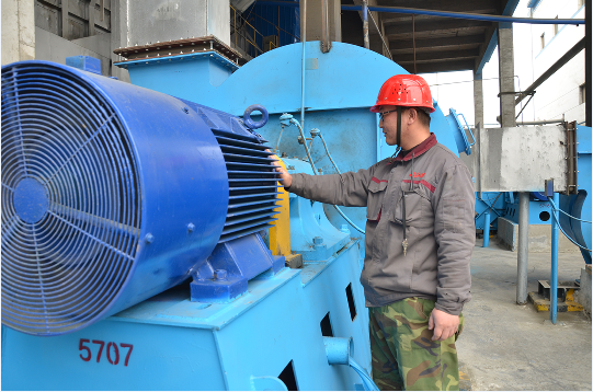 余熱發(fā)電中控員張明正在對真空泵進行壓油