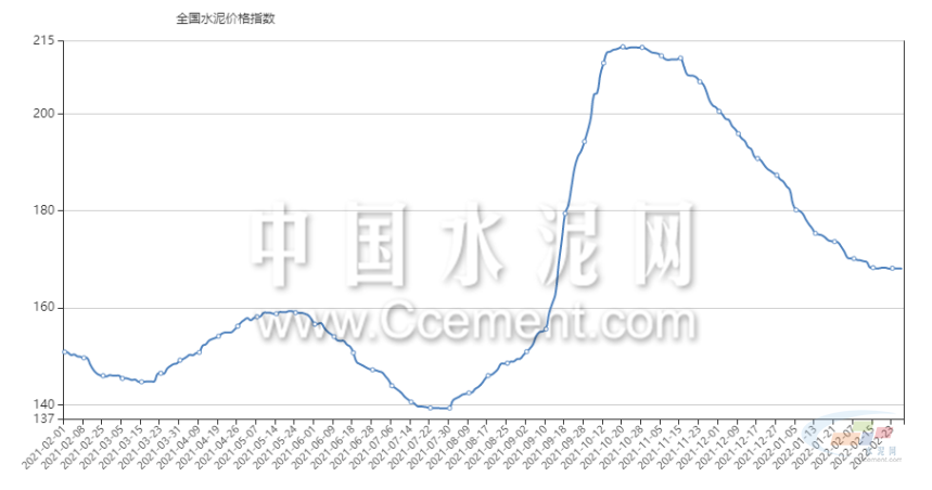 圖:全國(guó)水泥價(jià)格指數(shù)走勢(shì)