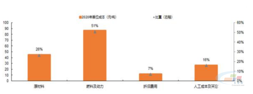 水泥是傳統(tǒng)的高能耗行業(yè),能源成本占水泥生產(chǎn)成本的50%以上。以海螺水泥為例,2020年燃料及動(dòng)力成本占51%,原材料占比26%,折舊占比7%,人工成本及其它占16%。鑒于2021年煤炭?jī)r(jià)格大漲,燃料成本或?qū)⒏摺?/strong>