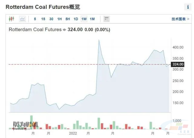 歐洲煤炭價(jià)格基準(zhǔn)之一、鹿特丹煤炭期貨價(jià)格走勢(shì) 圖片來源:英為財(cái)情