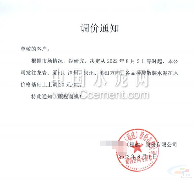 受停窯帶動,加之企業(yè)調價意愿強烈,8月2日起省內一些主要廠家開始嘗試通知上調水泥價格20元/噸左右。目前已有部分企業(yè)發(fā)布調漲通知,其余企業(yè)預計稍晚幾日跟進。