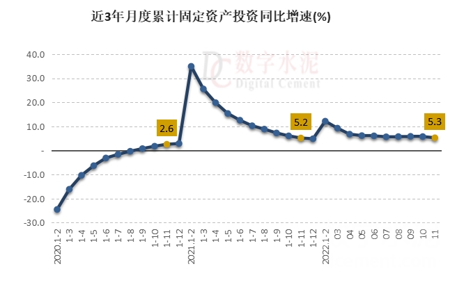 2022年1-11月,全國固定資產投資(不含農戶)52萬億元,同比增長5.3%,增速較1-10月下降0.5個百分點,高于去年同期0.1個百分點。從單月投資來看,11月份固定資產投資(不含農戶)環(huán)比下降0.87%。