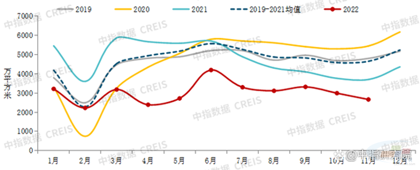 2022年1-11月,重點(diǎn)100城新建商品住宅成交面積同比降幅近四成,絕對(duì)規(guī)模為2015年以來(lái)同期最低水平。據(jù)初步統(tǒng)計(jì),2022年1-11月,100個(gè)代表城市新建商品住宅月均成交面積約3027萬(wàn)平方米,同比下降36.8%。