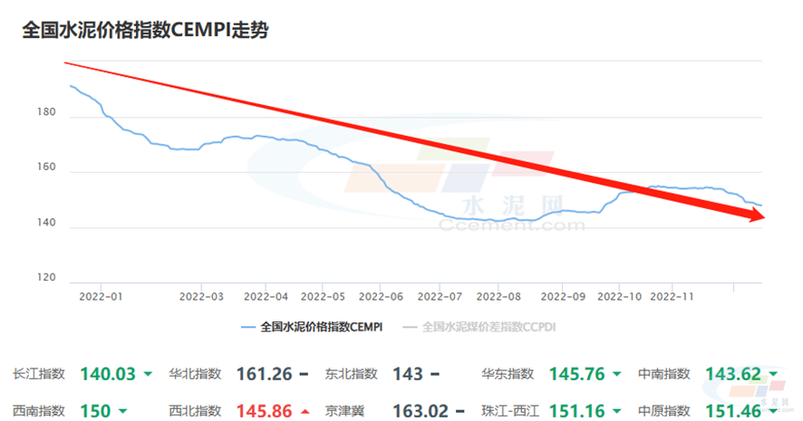 全國(guó)水泥價(jià)格指數(shù)CEMPI震蕩下行