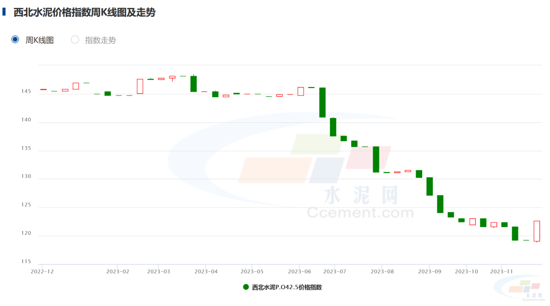 寧夏、甘肅、青海、新疆等地受低溫天氣影響,市場需求漸入淡季,水泥價格平穩(wěn)運行。