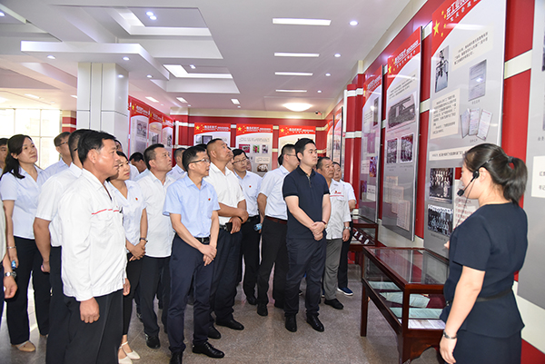 隨后,全體黨員干部代表集體乘車赴博山焦裕祿紀(jì)念館現(xiàn)場(chǎng)參觀,接受革命傳統(tǒng)教育,學(xué)習(xí)弘揚(yáng)焦裕祿精神,進(jìn)一步增強(qiáng)黨性修養(yǎng)和創(chuàng)業(yè)奮斗意識(shí)。在紀(jì)念館,黨員干部代表認(rèn)真聽(tīng)取講解,通過(guò)一張張圖片、一件件文物、一段段故事學(xué)習(xí)回顧焦裕祿同志光輝偉大的一生和感人致深的革命事跡,切身感受了焦裕祿同志親民愛(ài)民、艱苦奮斗、科學(xué)求實(shí)、迎難而上、無(wú)私奉獻(xiàn)的崇高精神。參觀結(jié)束后,全體黨員干部代表向焦裕祿同志塑像敬獻(xiàn)花籃并鞠躬致敬。全體黨員代表重溫入黨誓詞。參觀學(xué)習(xí)活動(dòng)給黨員干部上了一堂生動(dòng)難忘的黨課。本次主題教育活動(dòng),集團(tuán)公司還為全體黨員發(fā)放了《苦難輝煌》學(xué)習(xí)書籍,要求每名黨員牢記黨的奮斗歷史和革命傳統(tǒng),堅(jiān)定不移的跟黨走,以高度的責(zé)任感、使命感投入到本職工作中去,為黨的事業(yè)發(fā)展做出新的貢獻(xiàn)。