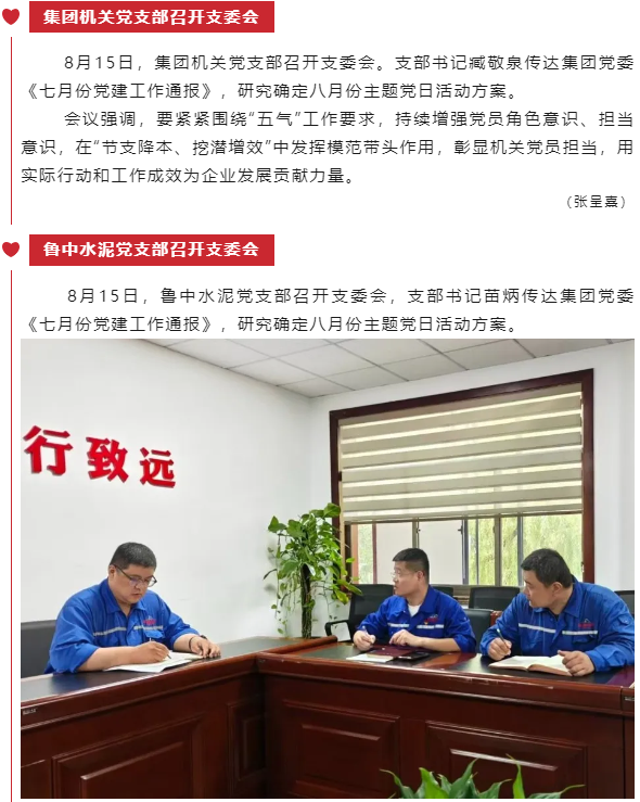 【黨建】集團機關(guān)黨支部、魯中水泥黨支部、重山光電黨支部分別召開支委會