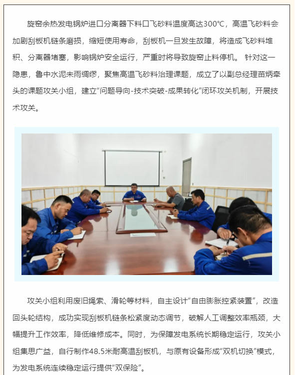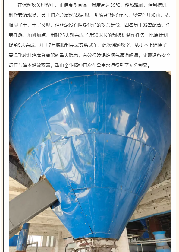 高溫“烤”驗下的攻關(guān)答卷——魯中水泥攻克高溫飛砂料治理難題