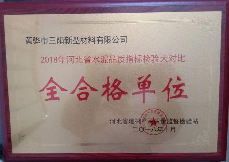 黃驊三陽喜獲得水泥品質(zhì)指標(biāo)檢驗(yàn)大對(duì)比全合格單位稱號(hào)