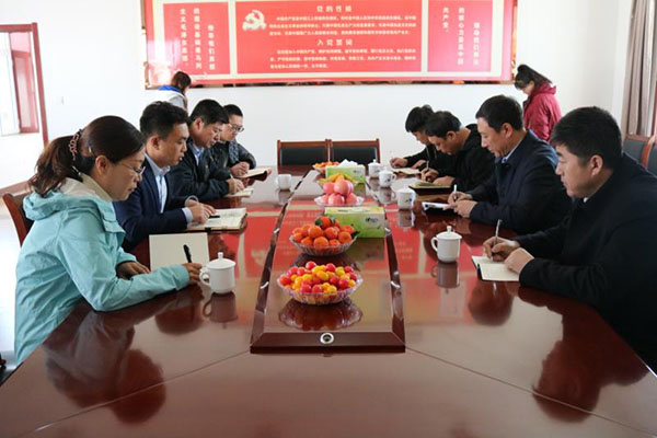 3月31日上午,巴林左旗旗委副書(shū)記、旗長(zhǎng)孟和達(dá)來(lái)在旗委辦、扶貧辦相關(guān)部門(mén)陪同下到魯蒙公司調(diào)研指導(dǎo)。