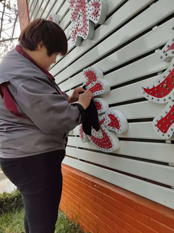 物資部文化墻上“心系重山,精誠(chéng)服務(wù),不忘初心,砥礪前行”十六個(gè)字真正體現(xiàn)了她們?yōu)楣ぷ鞯臒o(wú)私奉獻(xiàn)。在保持5S現(xiàn)場(chǎng)管理標(biāo)準(zhǔn)上,她們依然用瘦弱的身影平凡而堅(jiān)定的踐行著致良知精神。