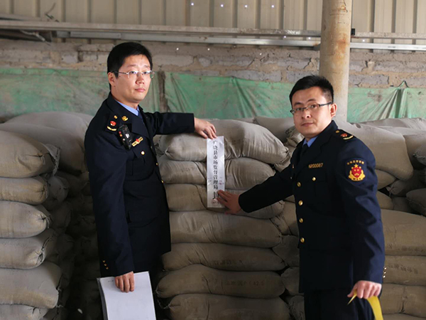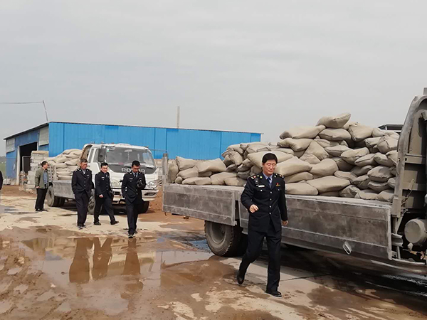 4月24日,魯中水泥銷售公司東營片區(qū)業(yè)務(wù)人員在市場摸排調(diào)研中發(fā)現(xiàn)廣饒縣小崗建材商戶出售的“重山”品牌PF32.5水泥與公司產(chǎn)品外包裝嚴(yán)重不符,一輛車牌號(hào)為魯E28090車輛滿載重山牌水泥在門店外售賣。經(jīng)多方走訪調(diào)查,公司及各經(jīng)銷商近期PF32.5型號(hào)水泥并沒有銷售給小崗建材,最終確定為假冒產(chǎn)品。 隨后,公司主動(dòng)聯(lián)系當(dāng)?shù)厥袌霰O(jiān)管執(zhí)法部門,并整理相關(guān)材料匯報(bào)廣饒縣市場監(jiān)管局,執(zhí)法部門十分重視,在做好充分摸排工作后,于4月26日與公司打假人員聯(lián)合展開行動(dòng),當(dāng)場查獲假冒重山PF32.5型號(hào)水泥27噸、假冒重山PC42.5水泥6噸。本次打假行動(dòng)既是對(duì)合法經(jīng)銷商的一種鼓勵(lì),也是對(duì)非法謀利者的沉痛打擊,起到了凈化當(dāng)?shù)厮嗍袌龅淖饔?,彰顯了公司堅(jiān)決維護(hù)品牌權(quán)益和消費(fèi)者利益的決心。
