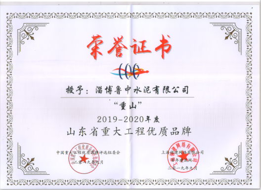 “重山”牌水泥喜獲山東省重大工程優(yōu)質(zhì)品牌獎