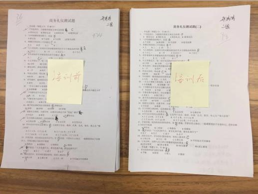 本次培訓設置了前后對比測試評估,培訓前測試平均分為38分,培訓后測試平均分為87分,成績有了明顯提升!通過培訓,既讓員工對商務禮儀規(guī)范的理念、規(guī)范的實務性操作有了新的認知,同時也對如何強化自身良好的職業(yè)素養(yǎng)有了進一步的了解,為提升企業(yè)的整體形象打下良好基礎。