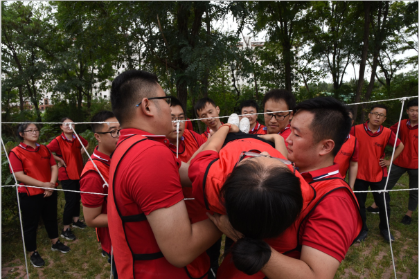 在教練的指導下,兩個團隊分頭行動,分別參加了高空抓杠、孤島求生、穿越電網(wǎng)等項目,最后兩支隊伍“合二為一”,共同體驗了“七巧板”項目。挑戰(zhàn)高空抓杠時,每位學員都戰(zhàn)勝了自身恐懼,大膽向前,躍出“不可能”的一跳;挑戰(zhàn)生死電網(wǎng)時,所有學員通過相互配合,打破了相互之間的生疏感,增進了情感交流,共同分享了戰(zhàn)勝困難的喜悅;“孤島”項目讓大家認識到工作的高效性得益于溝通障礙的打破,使學員們意識到合理的分工可以提高工作效率,鍛煉了學員的分析能力,增強學員們的工作時效性;“七巧板”項目告訴我們,信任與合作是完成看似不可能完成的任務法寶,鑄就團隊的力量才是王道。