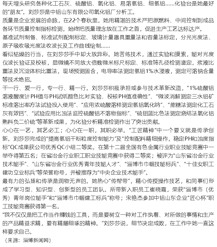 【淄博工匠】“淄博金牌工匠”劉莎莎——化驗(yàn)臺(tái)前“守望”效益