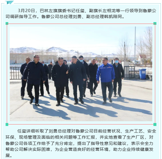 巴林左旗旗委書記任璽到魯蒙公司調(diào)研指導工作