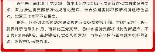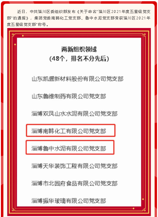 【黨建】南韓化工、魯中水泥黨支部榮獲“淄川區(qū)2021年度五星級黨支部”稱號