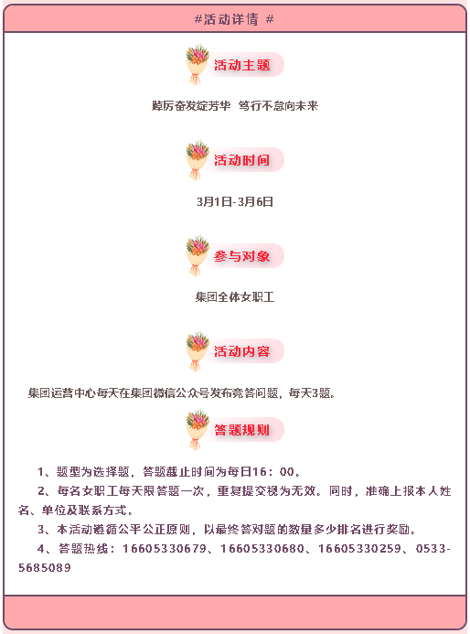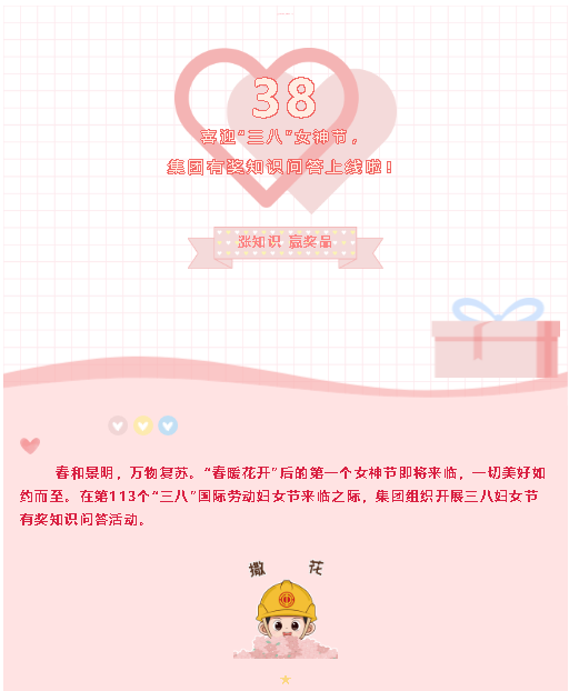 【活動(dòng)預(yù)告】喜迎“三八”女神節(jié),集團(tuán)有獎(jiǎng)問答上線啦!連續(xù)6天!贏獎(jiǎng)品!漲知識(shí)!