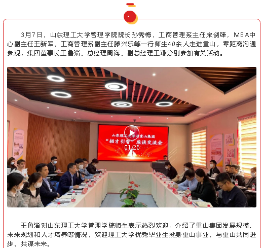 “招才引智”——山東理工大學(xué)管理學(xué)院走進重山