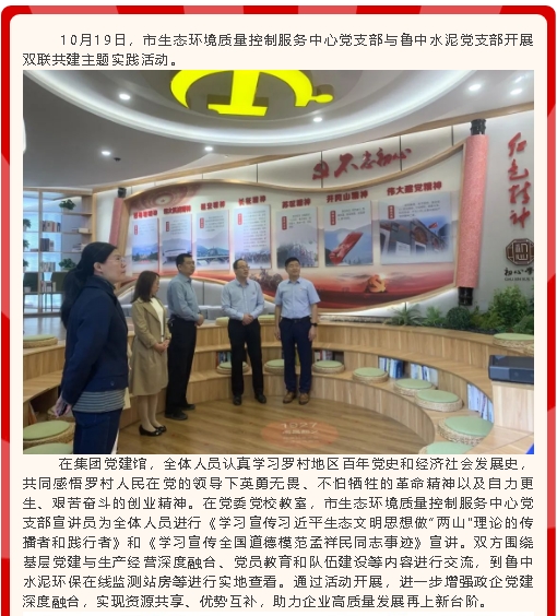 【黨建】理論宣講進(jìn)企業(yè) 雙聯(lián)共建促發(fā)展——市生態(tài)環(huán)境質(zhì)量控制服務(wù)中心黨支部與魯中水泥黨支部開(kāi)展雙聯(lián)共建主題實(shí)踐活動(dòng)