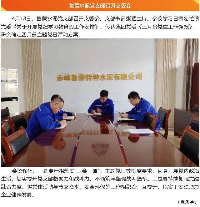 【黨建】重山光電黨支部、魯蒙水泥黨支部召開支委會