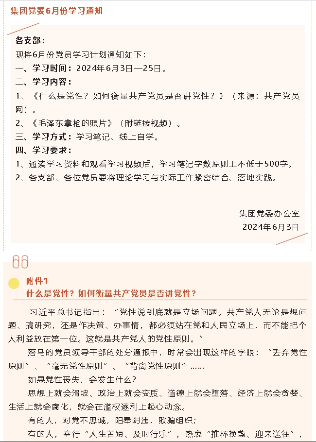 【通知】集團黨委6月份學(xué)習(xí)通知