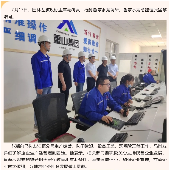 巴林左旗政協(xié)主席馬樹友到魯蒙水泥調(diào)研