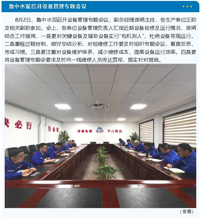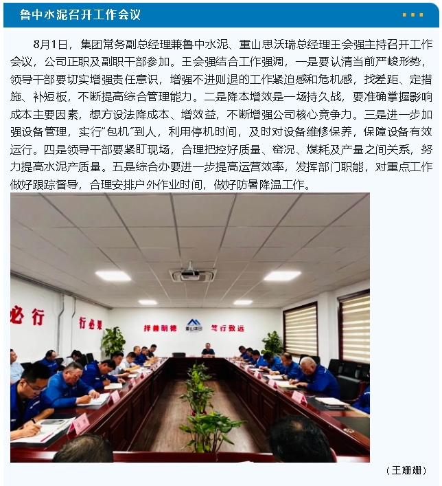 魯中水泥召開各級(jí)各類工作會(huì)議,深入推進(jìn)提質(zhì)增效