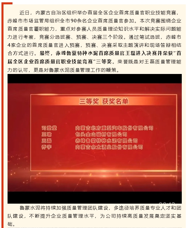 【榮譽(yù)】王磊榮獲首屆全區(qū)企業(yè)首席質(zhì)量官職業(yè)技能競(jìng)賽三等獎(jiǎng)
