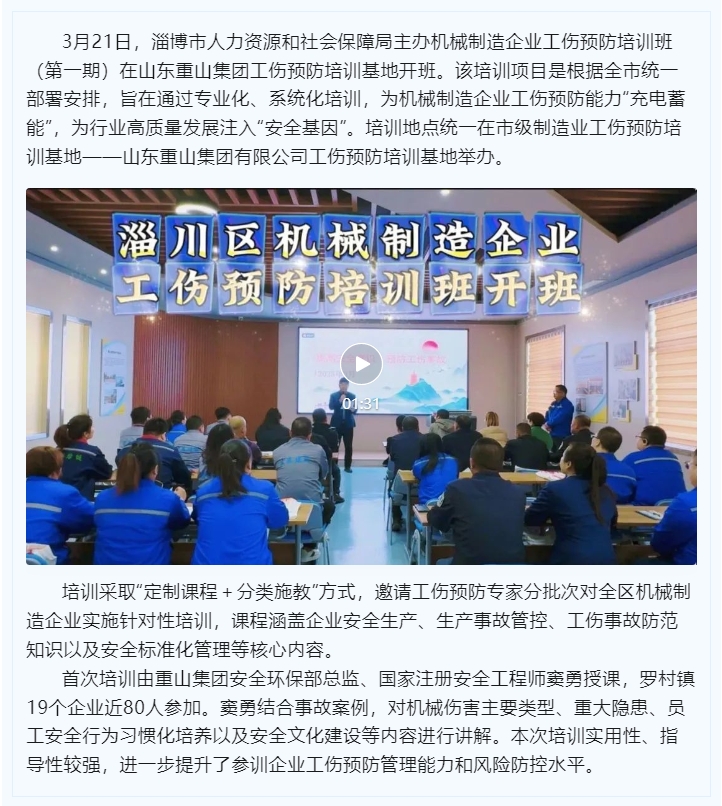 淄川區(qū)機械制造企業(yè)工傷預(yù)防培訓(xùn)班開班