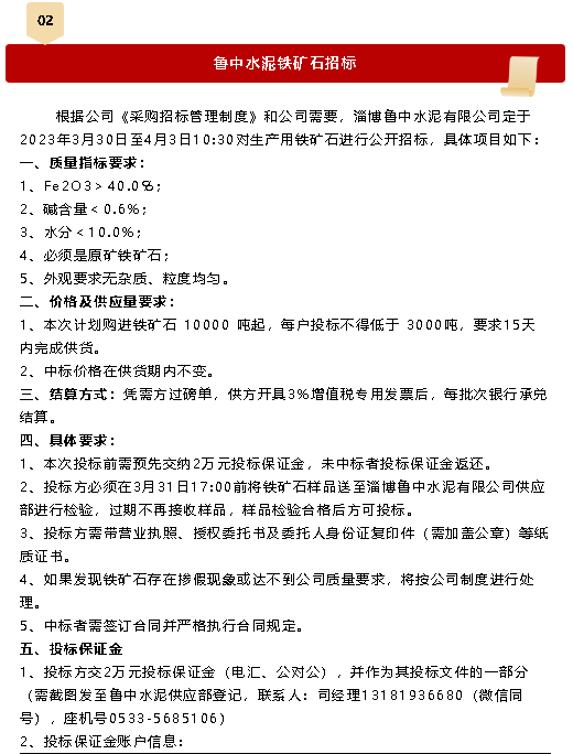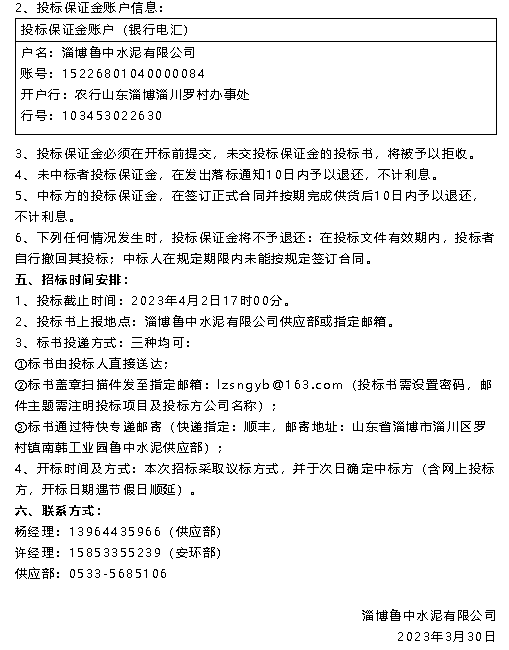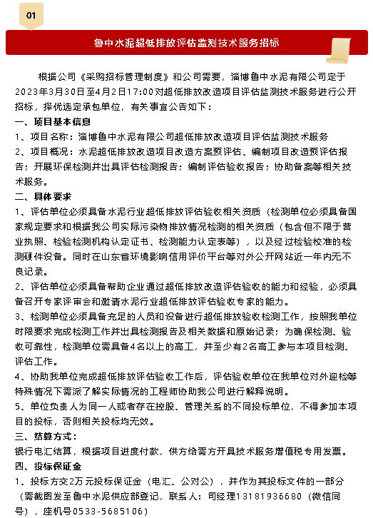 【招標(biāo)公告】魯中水泥超低排放評(píng)估監(jiān)測(cè)技術(shù)服務(wù)、鐵礦石招標(biāo)