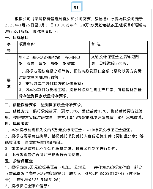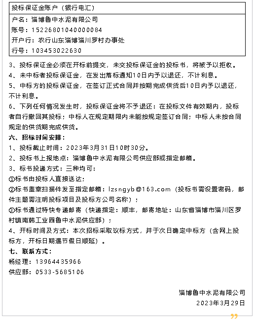 【招標公告】魯中水泥
