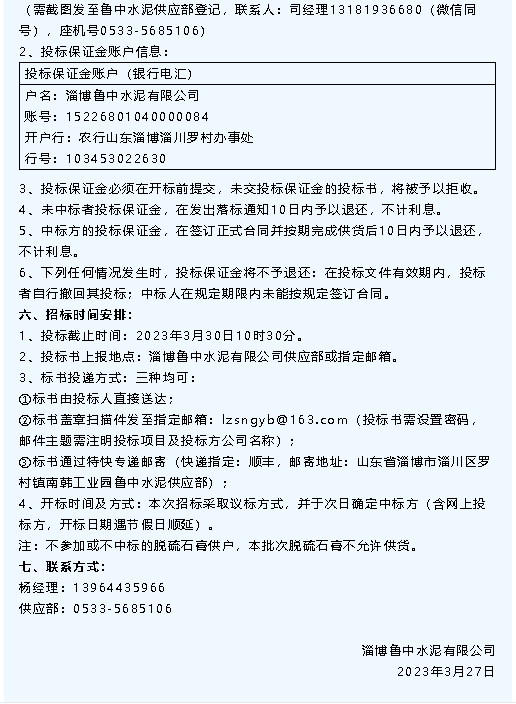 【招標(biāo)公告】重山集團(tuán)、魯中水泥、魯蒙水泥
