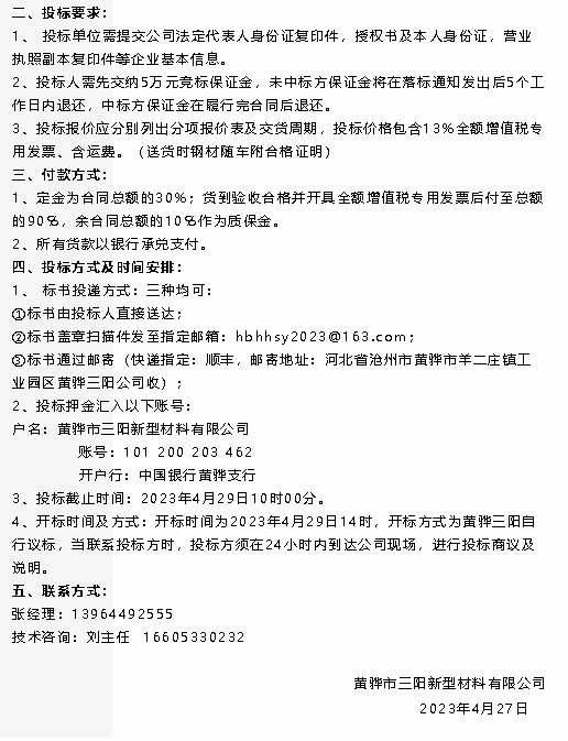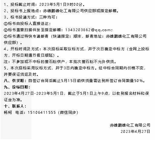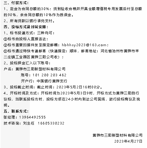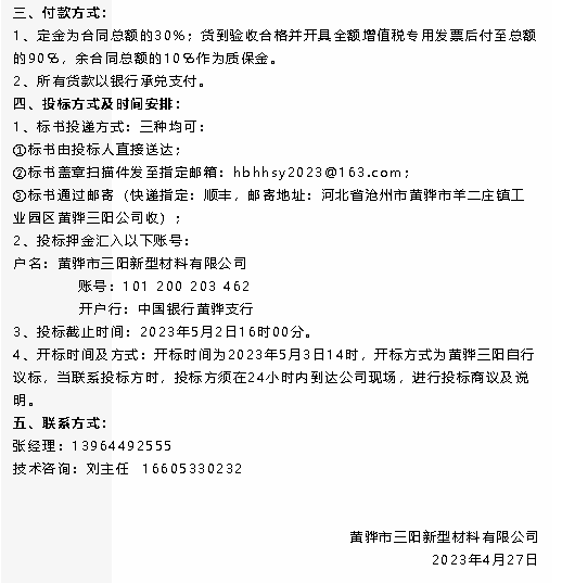 【招標(biāo)公告】黃驊三陽、鵬峰化工