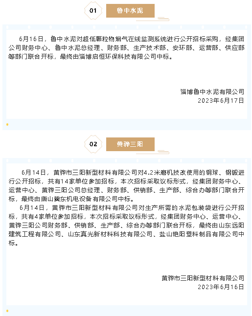 【中標(biāo)公告】魯中水泥、黃驊三陽(yáng)、鵬峰化工