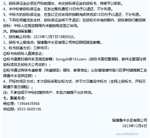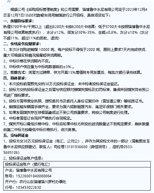 【招標(biāo)公告】魯中水泥
