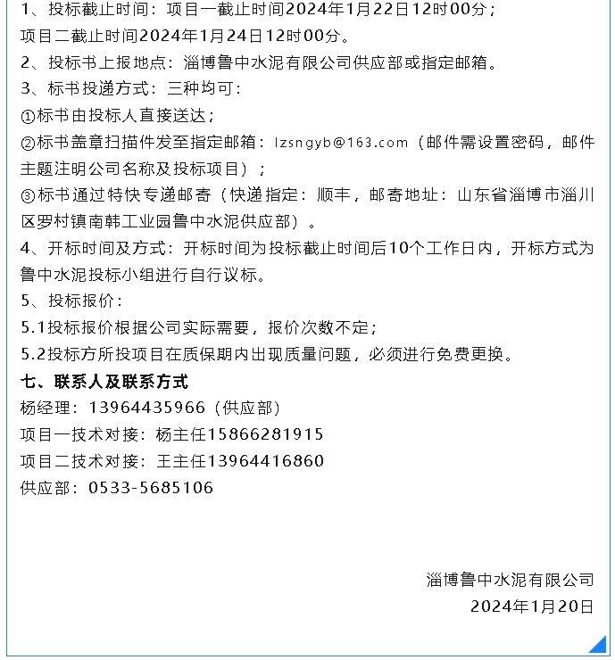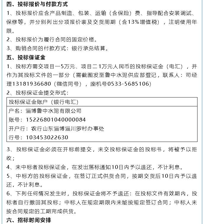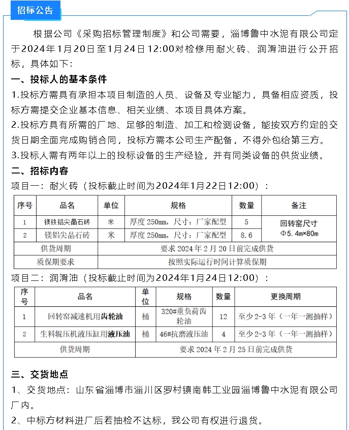 【招標(biāo)公告】魯中水泥