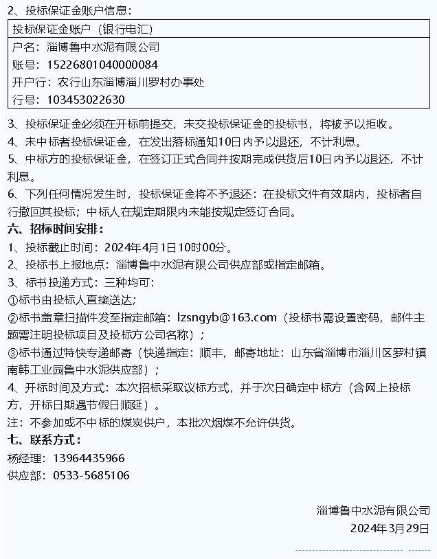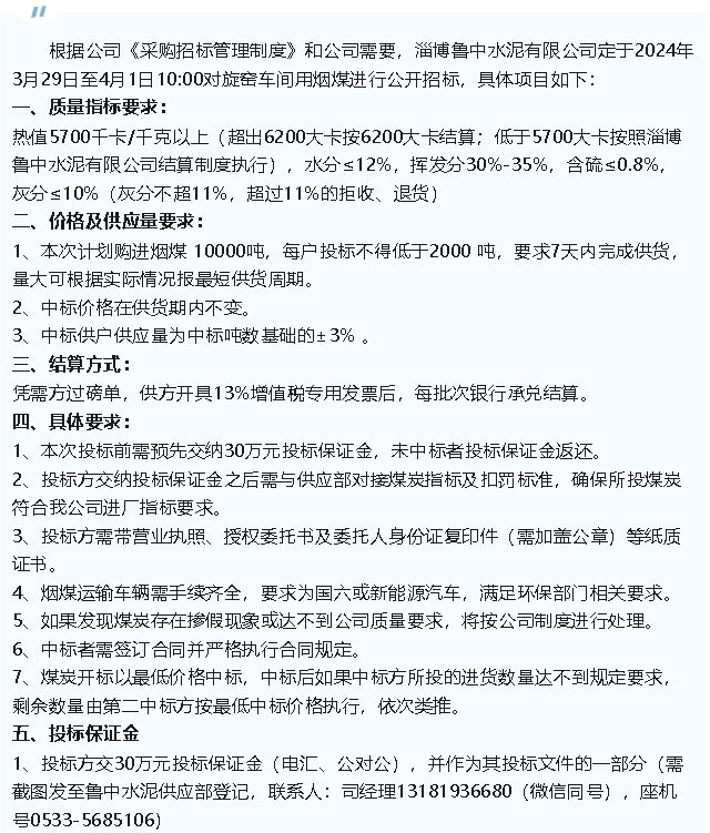 【招標(biāo)公告】魯中水泥