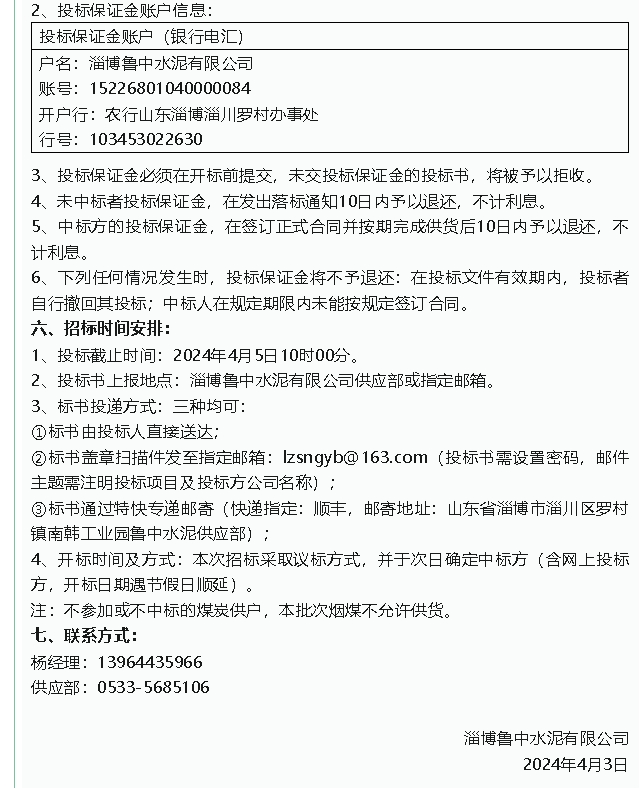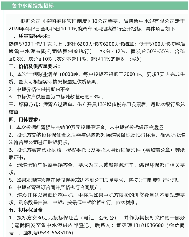 【招標(biāo)公告】魯中水泥煙煤、魯蒙水泥轉(zhuǎn)爐渣招標(biāo)