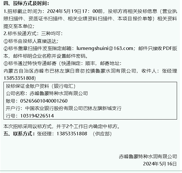 【招標公告】魯蒙水泥