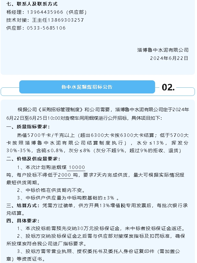 【招標(biāo)公告】魯中水泥空壓機(jī)油、煙煤,螢澤礦業(yè)低鉻合金鑄球招標(biāo)