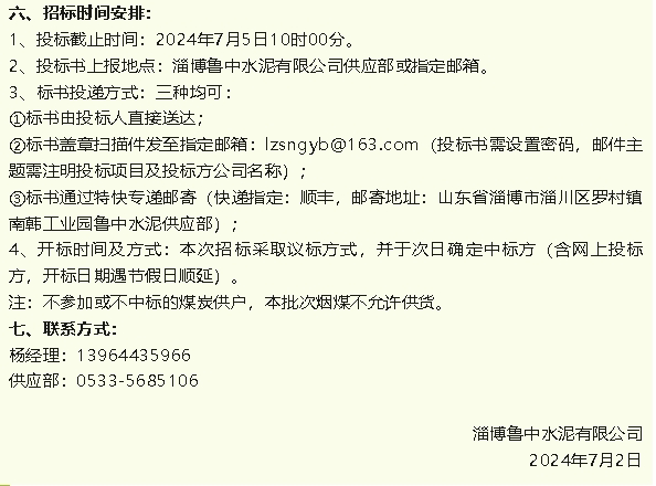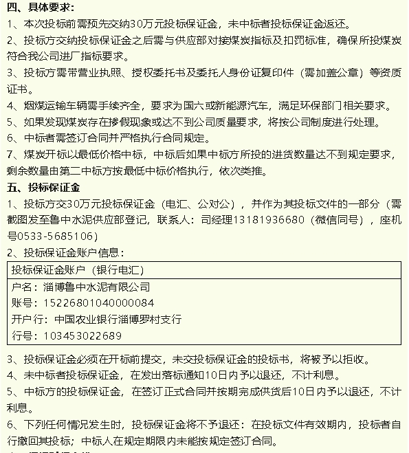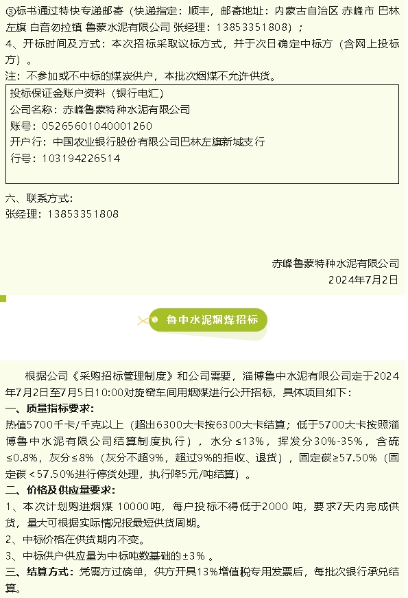 【招標(biāo)公告】魯蒙水泥、魯中水泥煙煤招標(biāo)