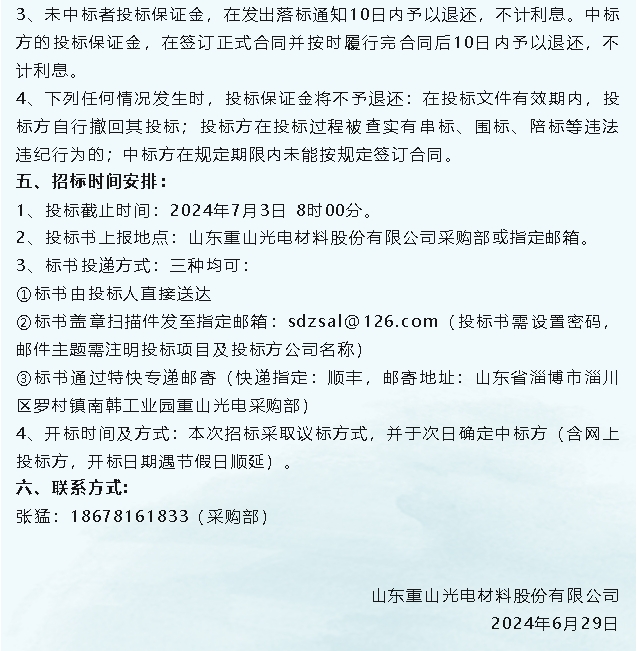 【招標(biāo)公告】魯中水泥、重山光電