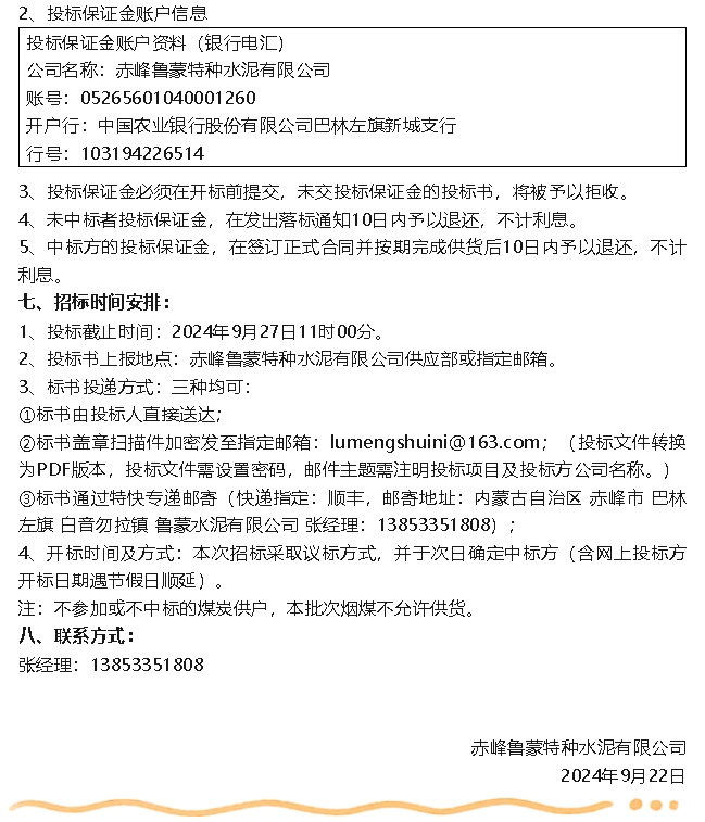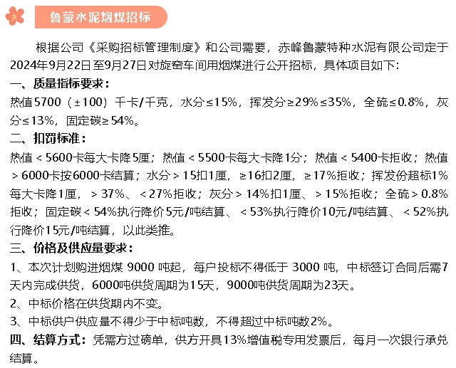 【招標(biāo)公告】魯蒙水泥、重山光電