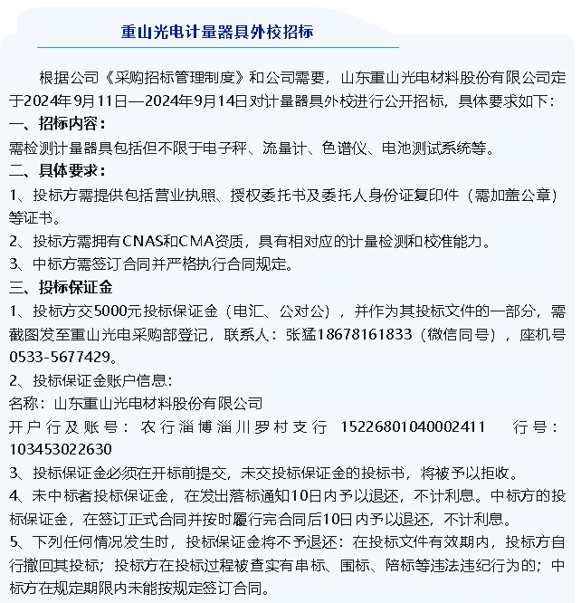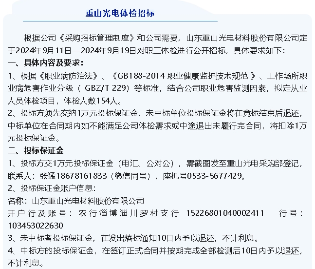 【招標(biāo)公告】重山光電
