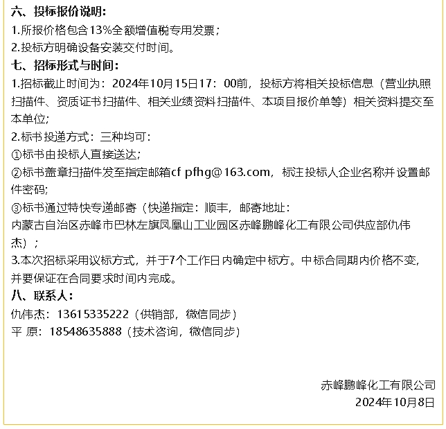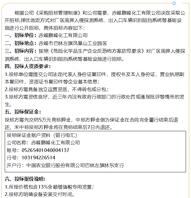 【招標(biāo)公告】鵬峰化工