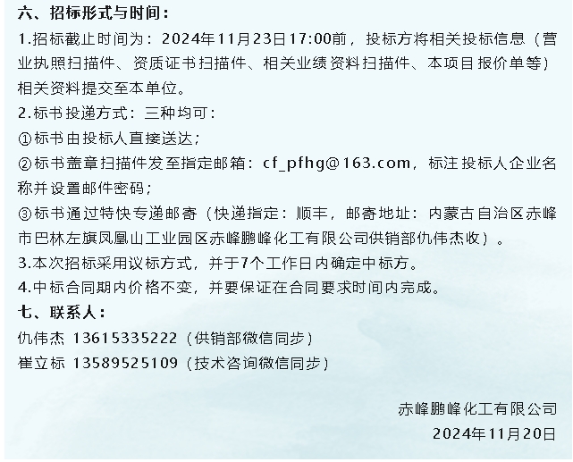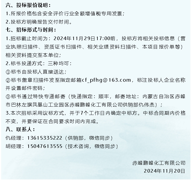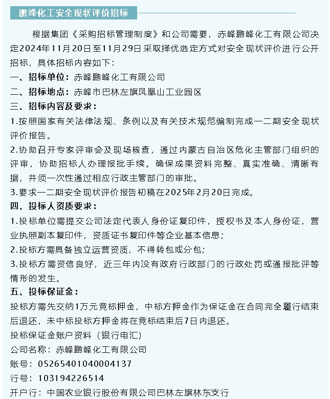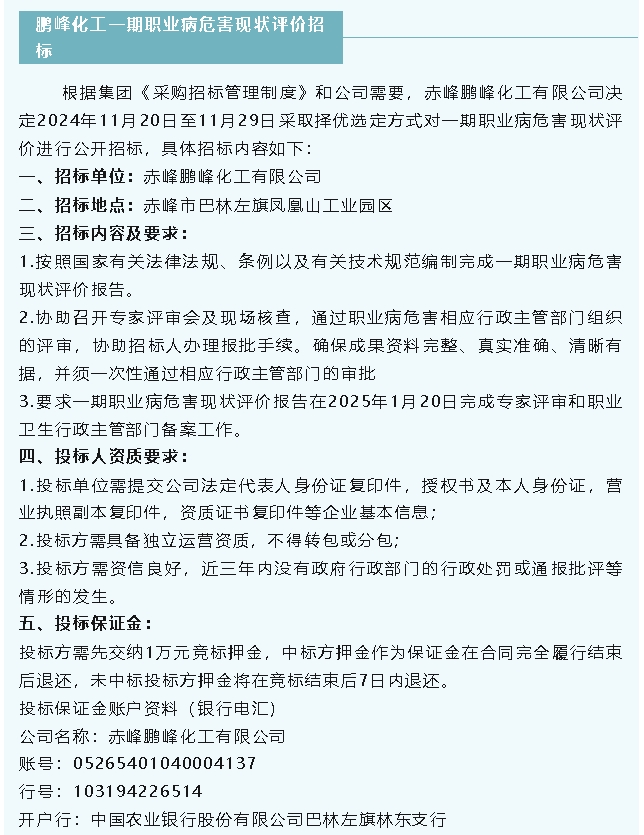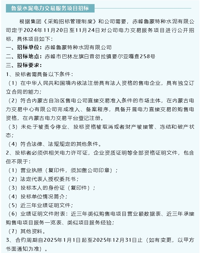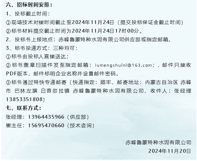 【招標公告】魯蒙水泥、鵬峰化工